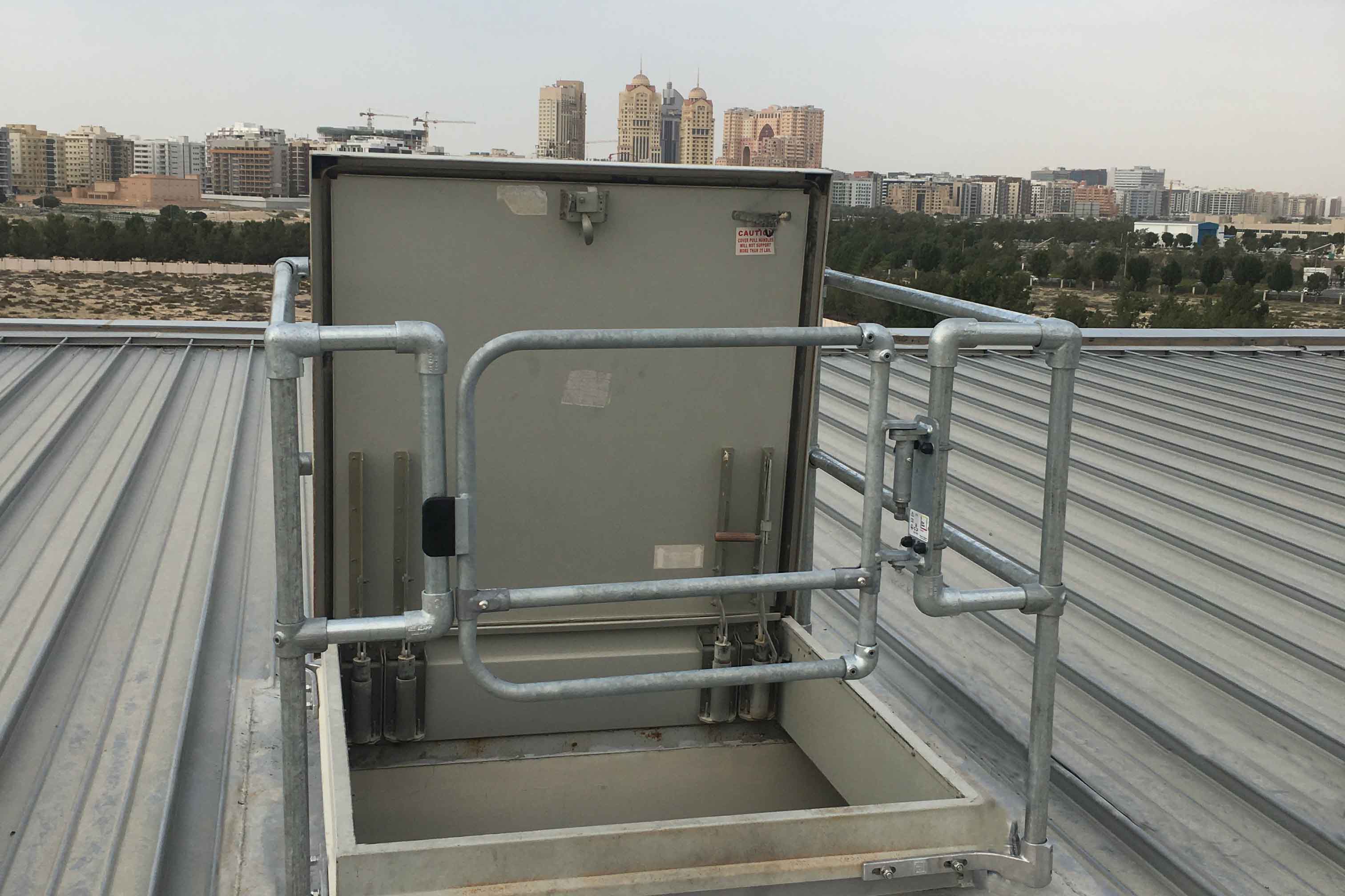 Pintu pagar ini berukuran lebar 1 m, dan dapat dengan mudah dipotong sesuai ukuran di lokasi. Engsel yang dapat dibalikkan dapat dipasang di sebelah kiri atau kanan bukaan, sehingga membuat pemasangannya lebih mudah dan lebih fleksibel. Mekanisme engsel yang dilengkapi dengan pegas memastikan pintu pagar akan selalu menutup sehingga menjaga keamanan penghalang untuk melindungi pekerja saat bekerja di ketinggian.