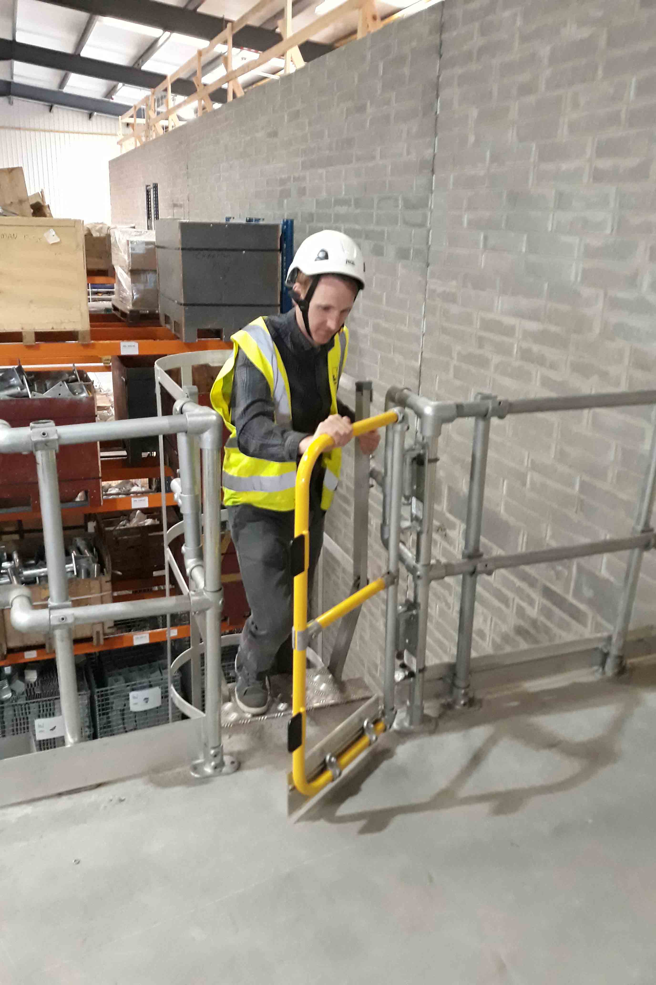 Pintu pagar ketinggian penuh dirancang untuk tangga. Berdiri dengan tinggi 1100mm dan berfitur papan kaki (toe board) aluminium, pintu pagar ini memberikan perlindungan tambahan bagi pekerja yang bekerja pada semua ketinggian. Pintu pagar ketinggian penuh ini sepenuhnya dapat disesuaikan dan dapat mengakomodasi bukaan hingga 1 m.