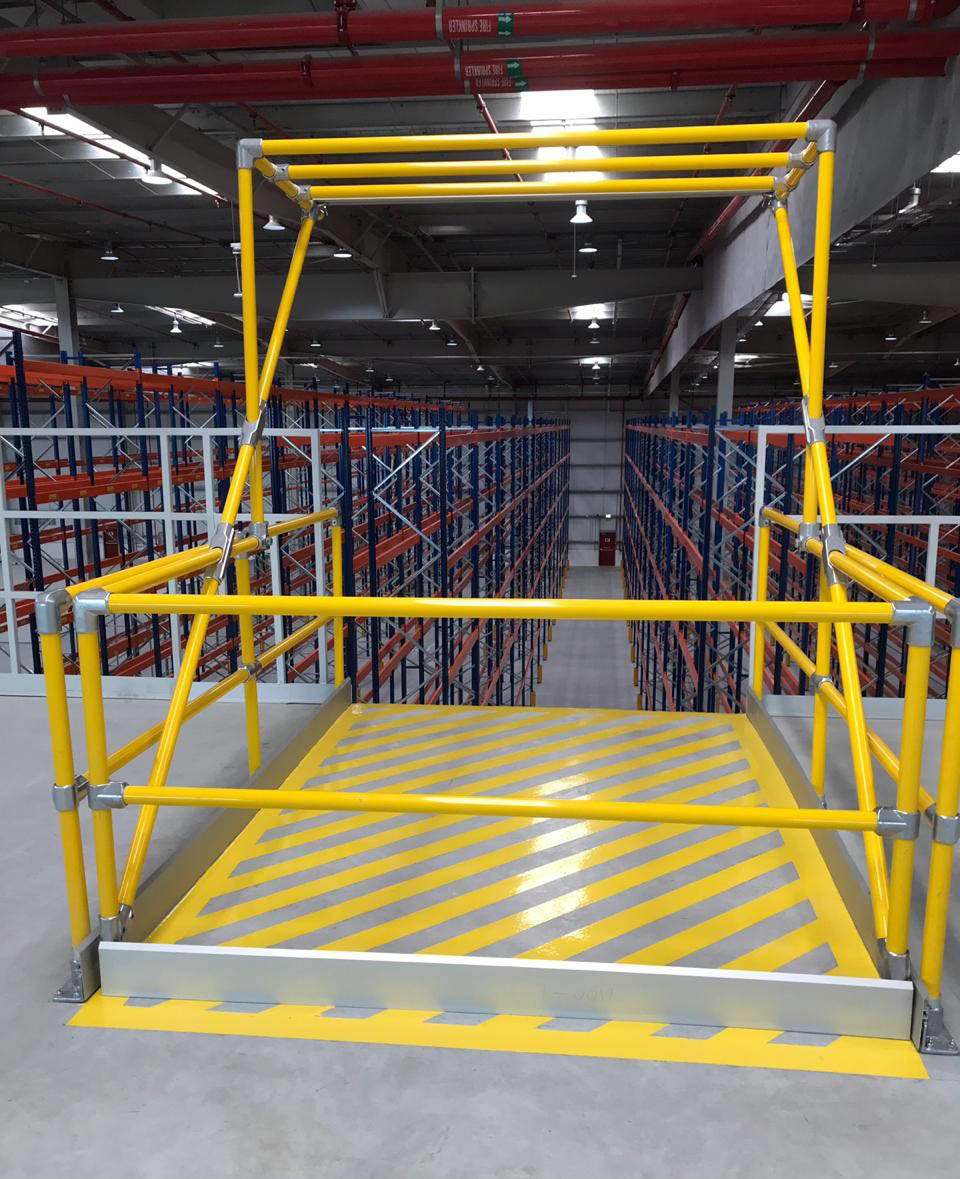 Dirancang untuk menyediakan akses yang aman bagi pekerja pabrik dan gudang yang bertanggung jawab untuk pemuatan dan pembongkaran palet pada lantai mezanin atau permukaan kerja yang ditinggikan.